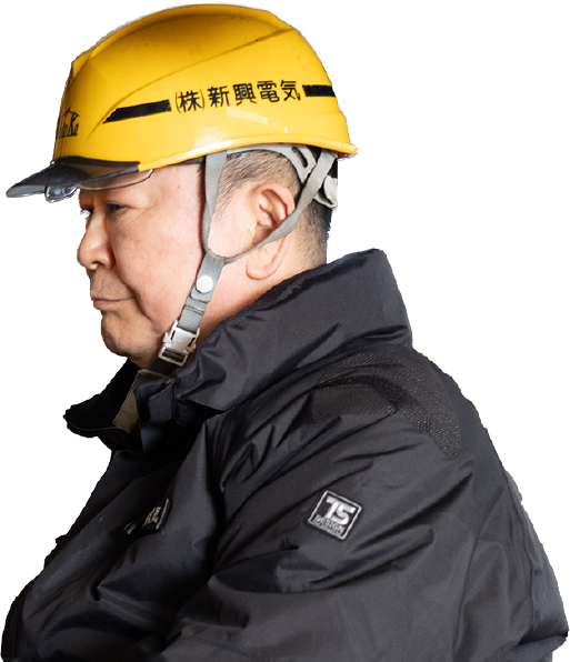 長年、電気の世界で腕を磨いてきましたが、60歳を過ぎて「これまでの経験をどう活かすか」を考えていた私を、新興電気は「施設整備マネージャー」として迎えてくれました。現在は点検業務に加え、敷地内の環境整備や冬場の除雪、そして現場へ向かう若手たちのサポートを担っています。重機の動きひとつで設備を守り、仲間が安全に出発できる環境を整える。それが、今の私の誇りです。